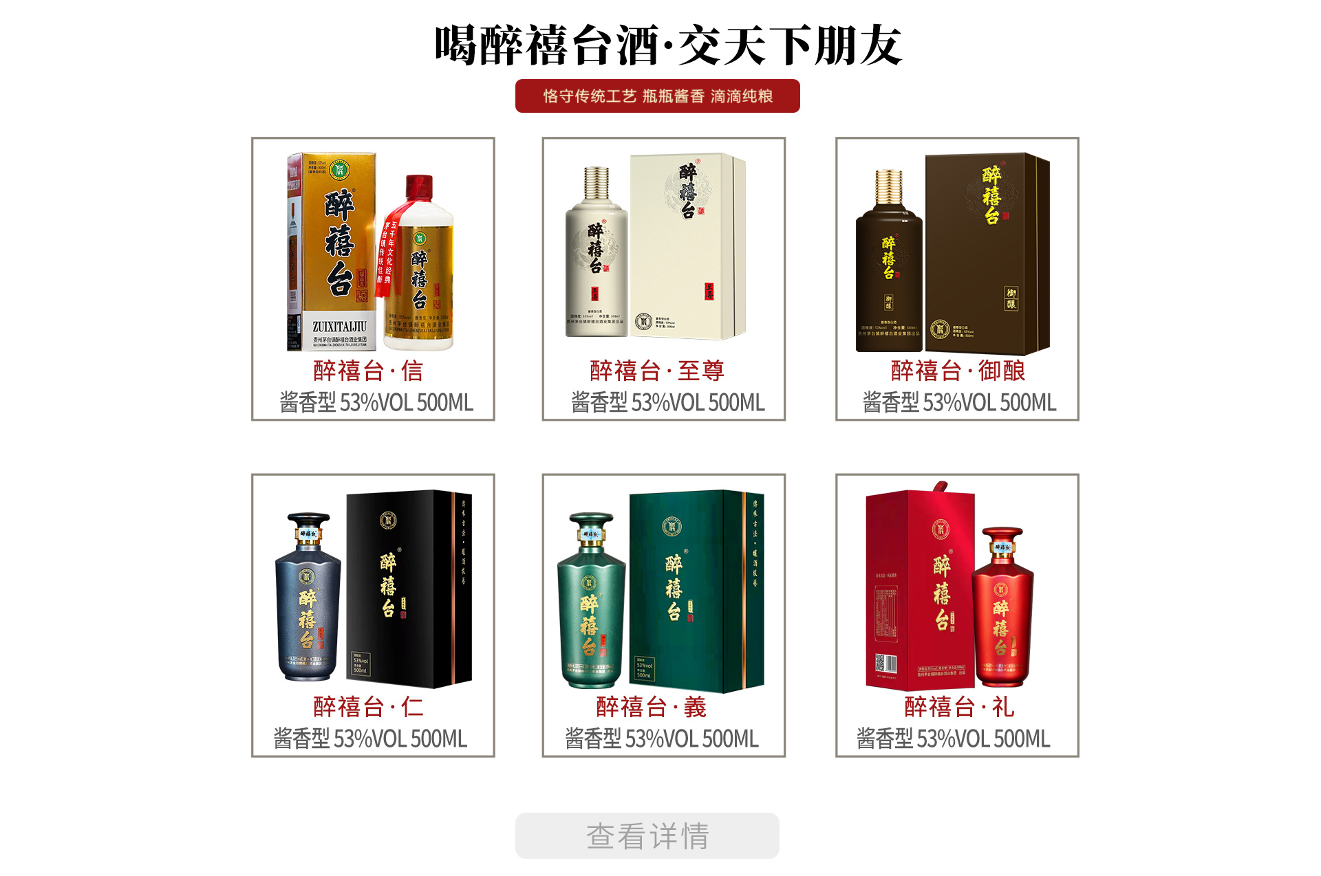 貴州醉禧臺(tái)酒業(yè)(集團(tuán))公司位于"中國(guó)酒都核心區(qū)"的國(guó)酒之鄉(xiāng)茅臺(tái)鎮(zhèn),醉禧美酒醬酒香,玉碗盛來(lái)琥珀光,因飲后醇厚余香、回味悠久,具有茅臺(tái)古鎮(zhèn)醬香之風(fēng)味,故名醉禧臺(tái)。醉禧臺(tái)燒坊始建于1981年,于2012年商標(biāo)注冊(cè)為醉禧臺(tái)酒廠,2016年3月16日正式成立,“貴州醉禧臺(tái)酒業(yè)(集團(tuán))公司”。因得天獨(dú)厚的朱砂土壤和氣候,產(chǎn)品選用赤水河兩岸的優(yōu)質(zhì)紅高粱、小麥為主要原料,秉承茅臺(tái)傳統(tǒng)釀酒工藝釀制,現(xiàn)有廠房占地面積約3萬(wàn)平方米,年產(chǎn)量達(dá)3000余噸,是一家極具品質(zhì)為基,時(shí)間為核、貯足陳釀、醬香型白酒的生產(chǎn)、研發(fā)、銷(xiāo)售為一體的釀酒企業(yè)。